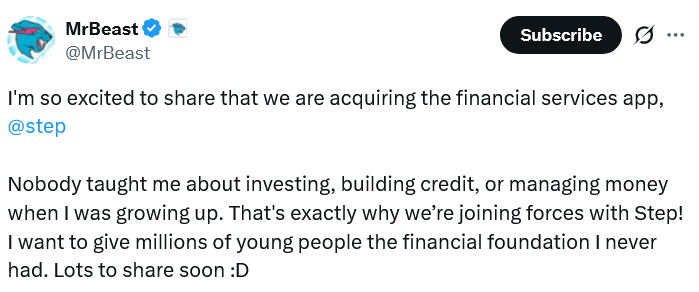 Beast Industries, the entertainment company founded by YouTuber Jimmy “MrBeast” Donaldson, is acquiring Step, a mobile banking app focused on ...
